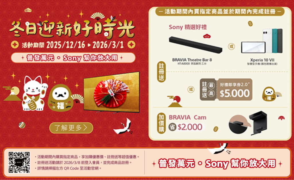 01 10 月 未分類 SONY冬日迎新好時光2025/12/16-2026/03/01 2025 年 12 月 17 日 By CEO SONY冬日迎新好時光2025/12/16-2026/03/01 【產品註冊登...繼續閱讀