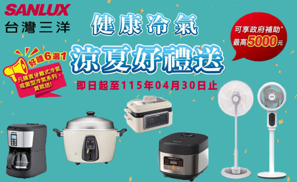 01 10 月 未分類 三洋 健康冷氣 涼夏好禮送 2026/02/01-2026/04/30 2026 年 1 月 30 日 By CEO 健康冷氣 涼夏好禮送 2026/02/01-2026/04/30 繼續閱讀