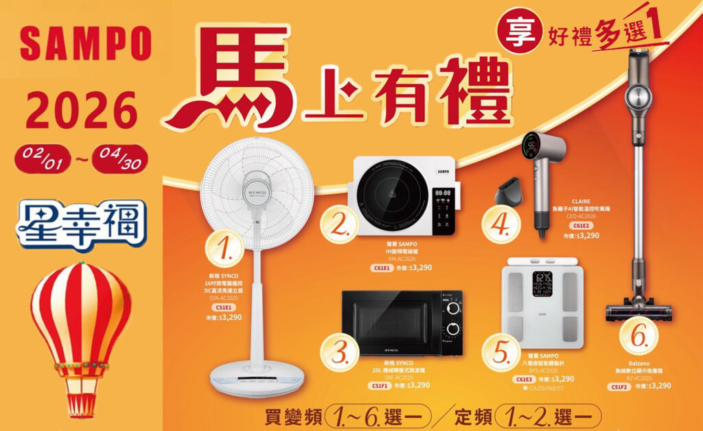 05 2 月 未分類 禾聯 熊厚禮 好禮五選一 2026/02/01-2026/04/30 2026 年 1 月 30 日 By 美編838 熊厚禮 好禮五選一 2026/02/01-2026/04/30 繼續閱讀