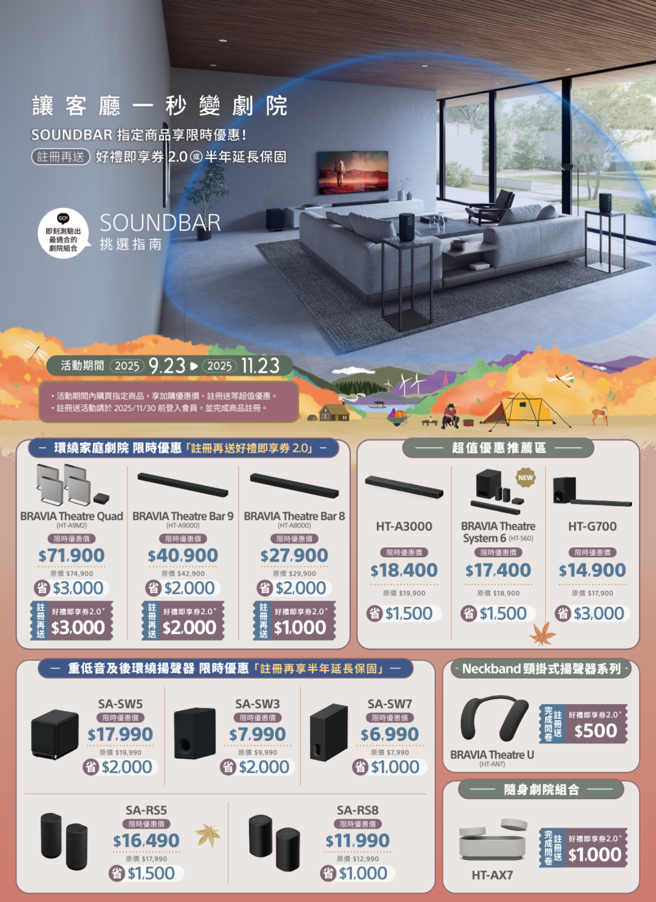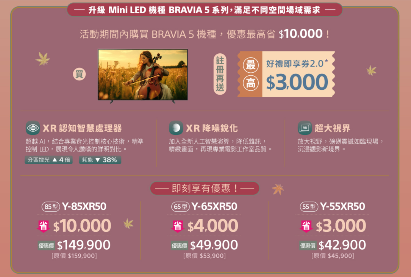 最新優惠 SONY 秋日拾趣好時光 2025/09/23-2025/11/23 2025 年 10 月 1 日 Posted by 802 19 6 月 sony秋日拾趣好時光 活動期間2025年9月23日 至 2025年11月23日 sony會員註冊