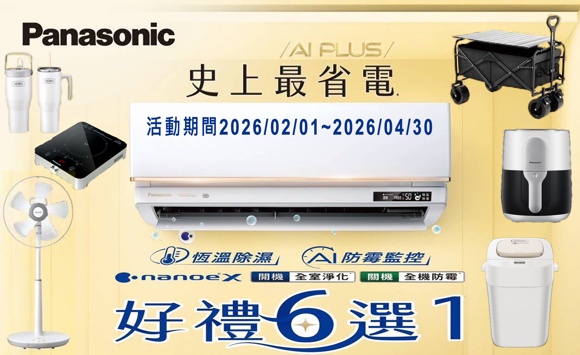 國際 史上最省電 好禮六選一 2026/02/01~2026/04/30