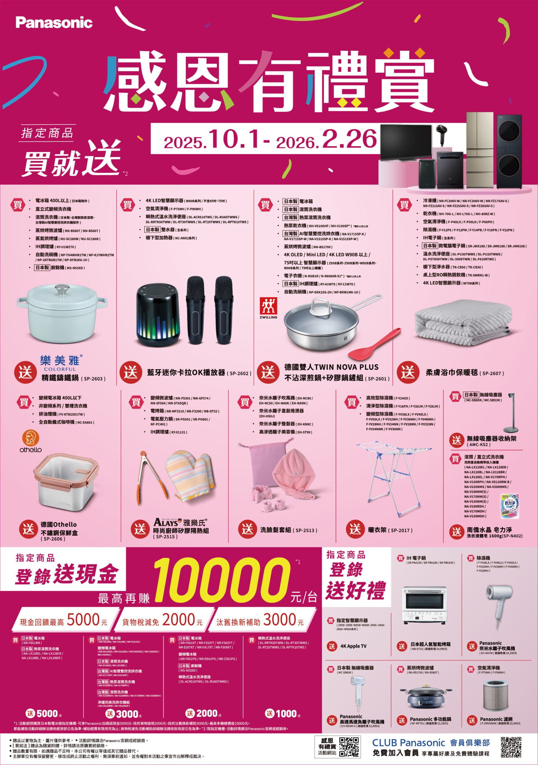 未分類 Panasonic-感恩有禮賞 2025/10/01-2026/02/26 2025 年 10 月 1 日 Posted by 美編838 23 1 月 Panasonic-感恩有禮賞 2025/10/01-2026/02/26 登入連結