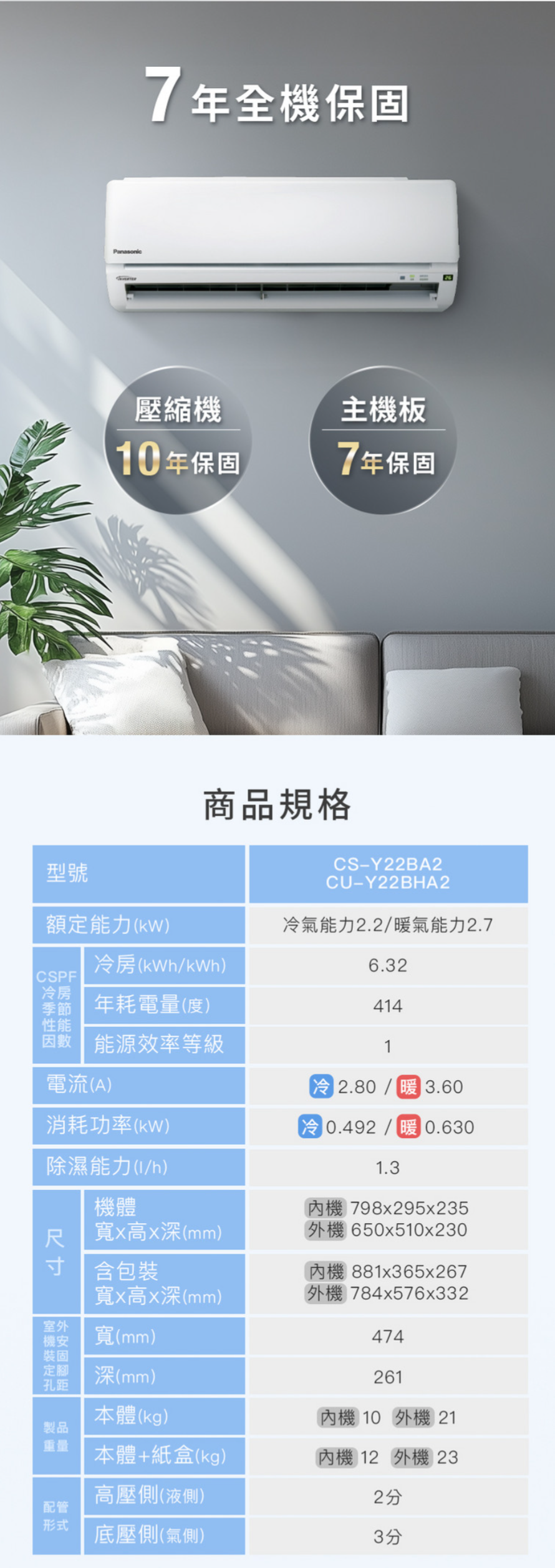 保固年限:全機七年、壓縮機10年