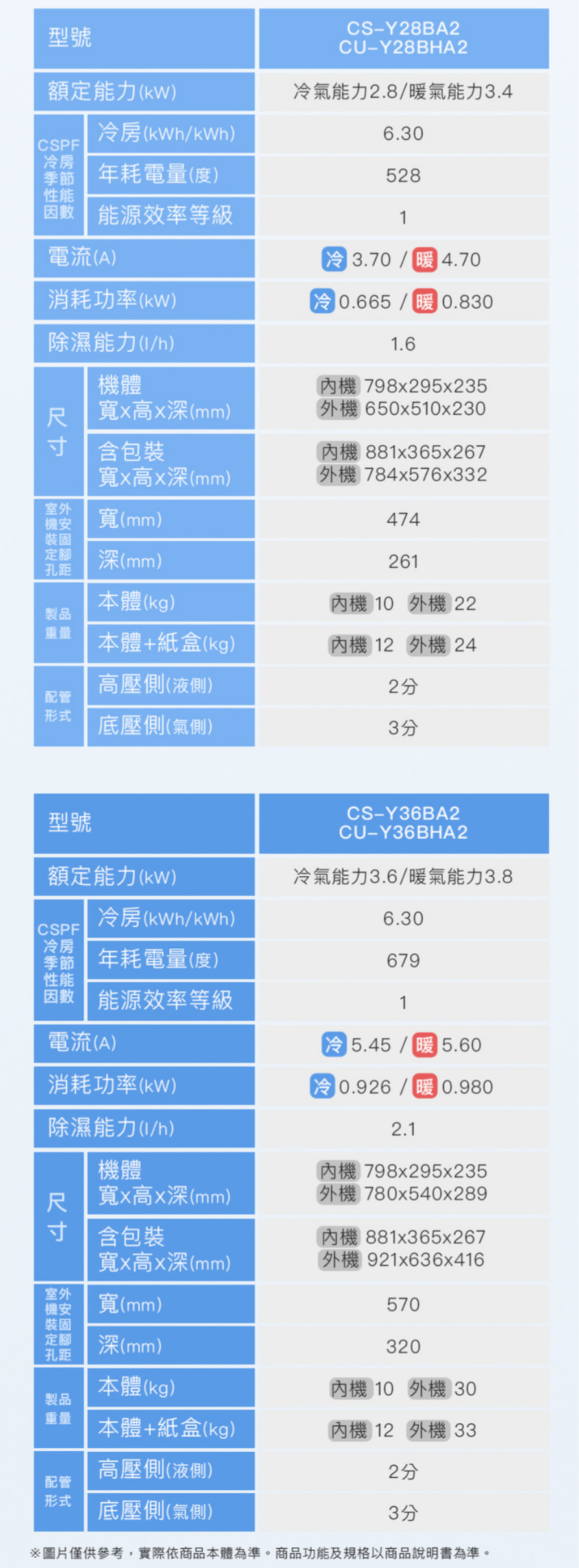 Panasonic 國際 4-5坪 一對一 Y系列 變頻 冷暖 CU-Y28BHA2/CS-Y28BA2 NT$27,100 NT$23,300