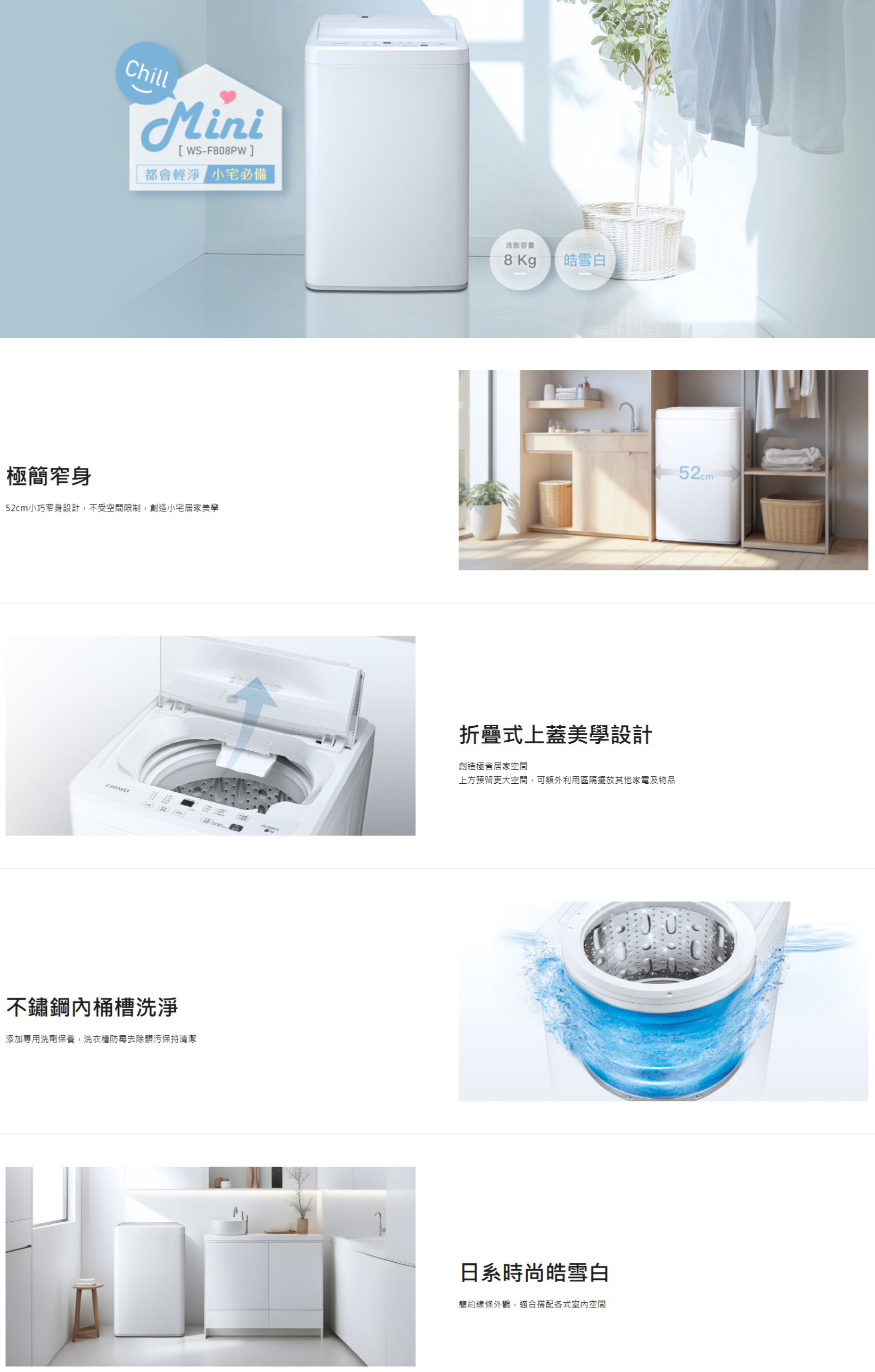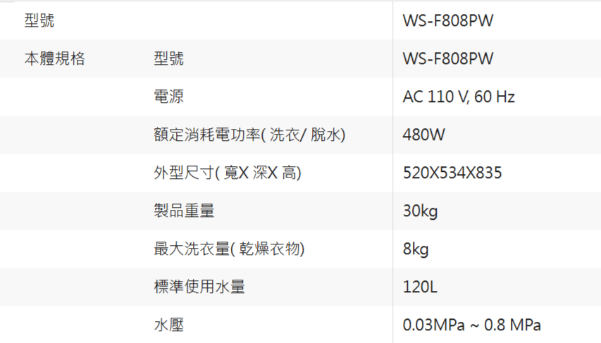 貨號: WS-F808PW 分類: CHIMEI奇美, 奇美定頻洗衣機, 所有商品分類, 洗衣機, 生活家電