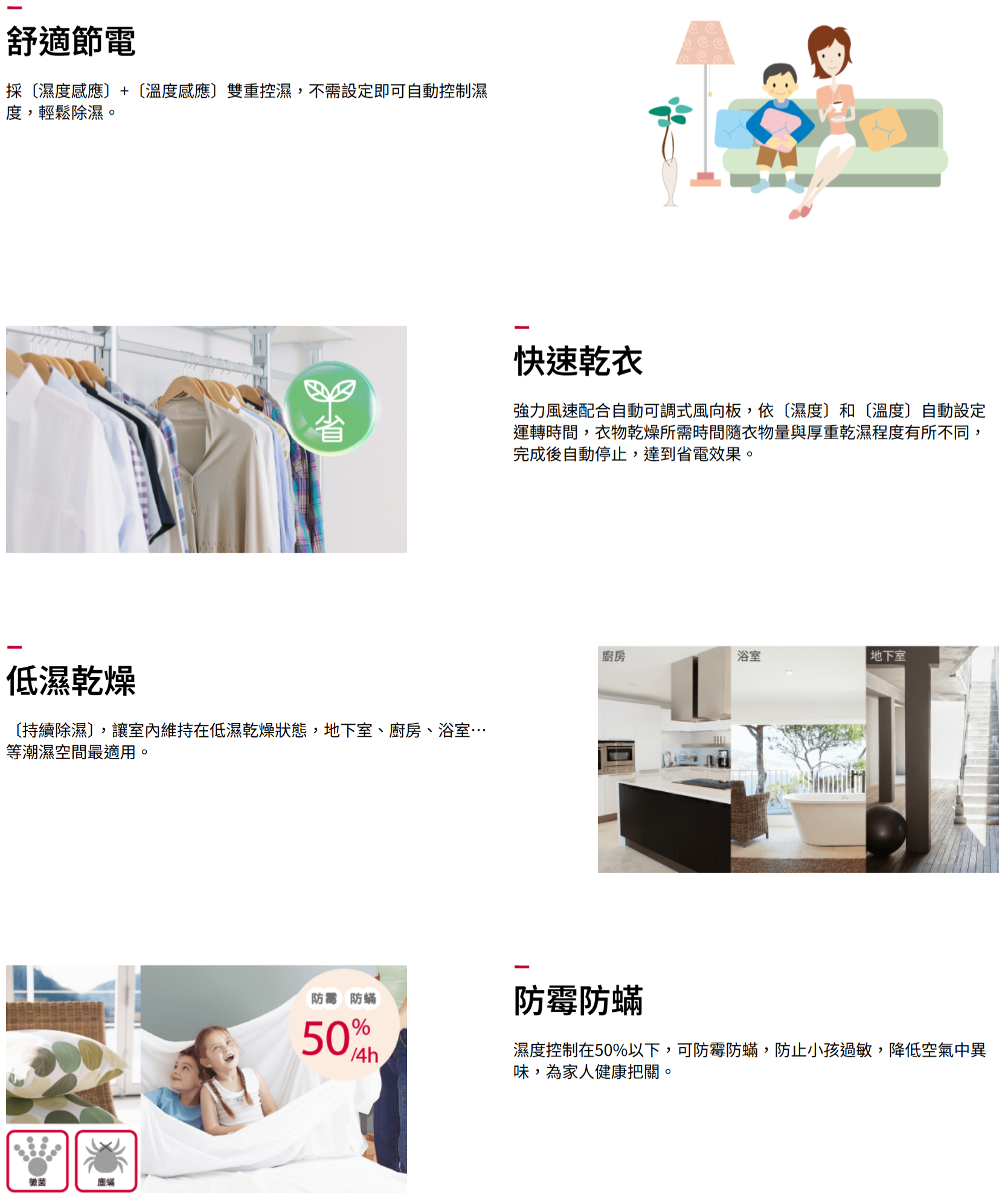 舒適節電 / 低濕乾燥 / 快速乾衣 / 防霉