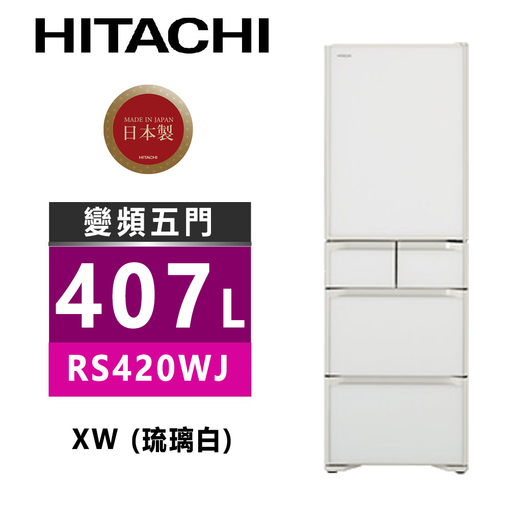 貨號: RS420WJ-XW 分類: HITACHI日立冰箱, 所有商品分類, 日製550L以下, 日製五門, 日製琉璃, 電冰箱
