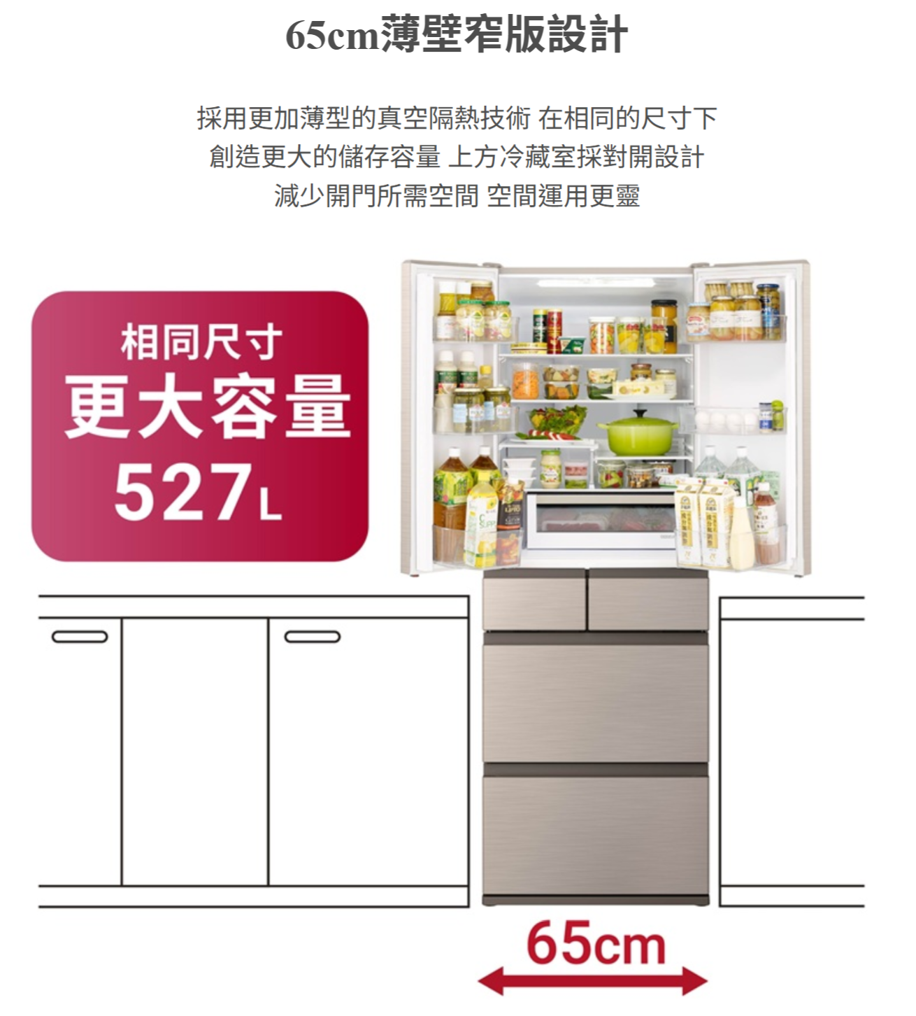 - 一鍵急冷凍搭載大型鋁盤 不堆疊寬淺設計