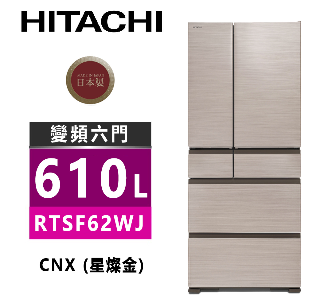 HITACHI 日立 610公升 日本製 原裝變頻六門鋼板冰箱 RTSF62WJ-CNX (星燦金)