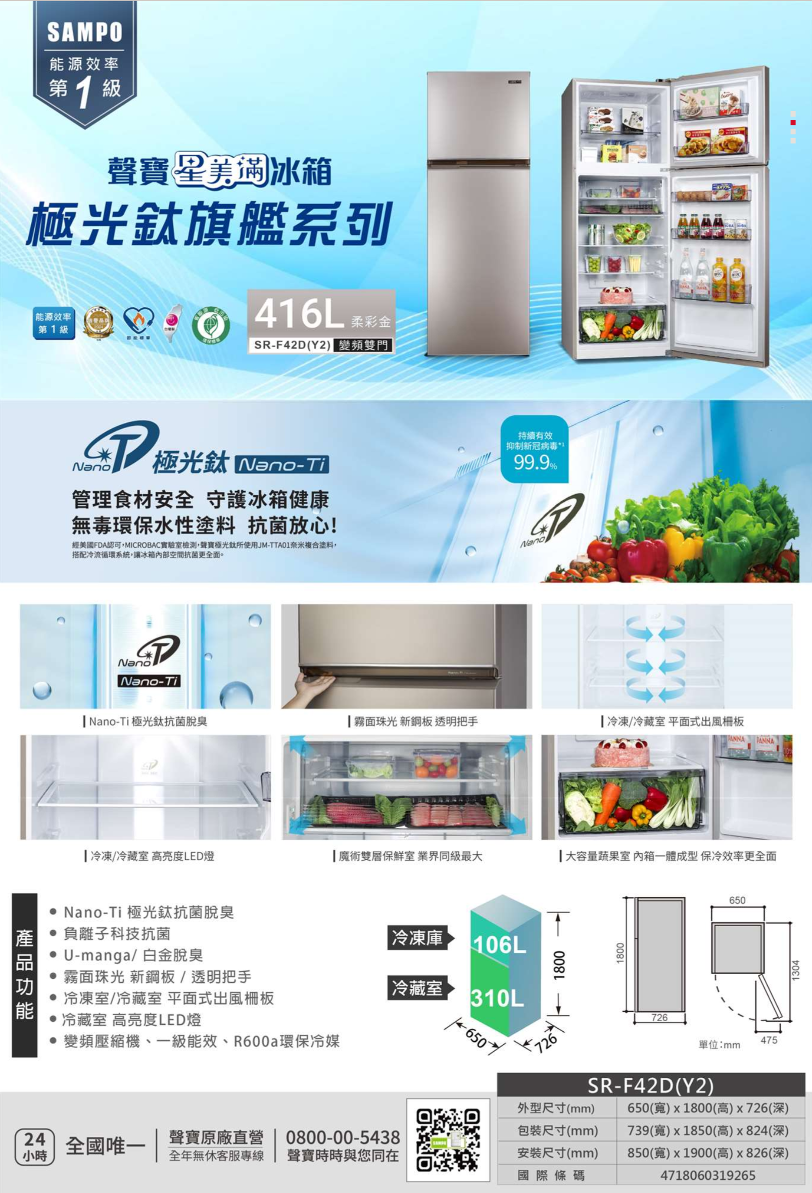 變頻壓縮機、一級能效、R600a環保冷媒