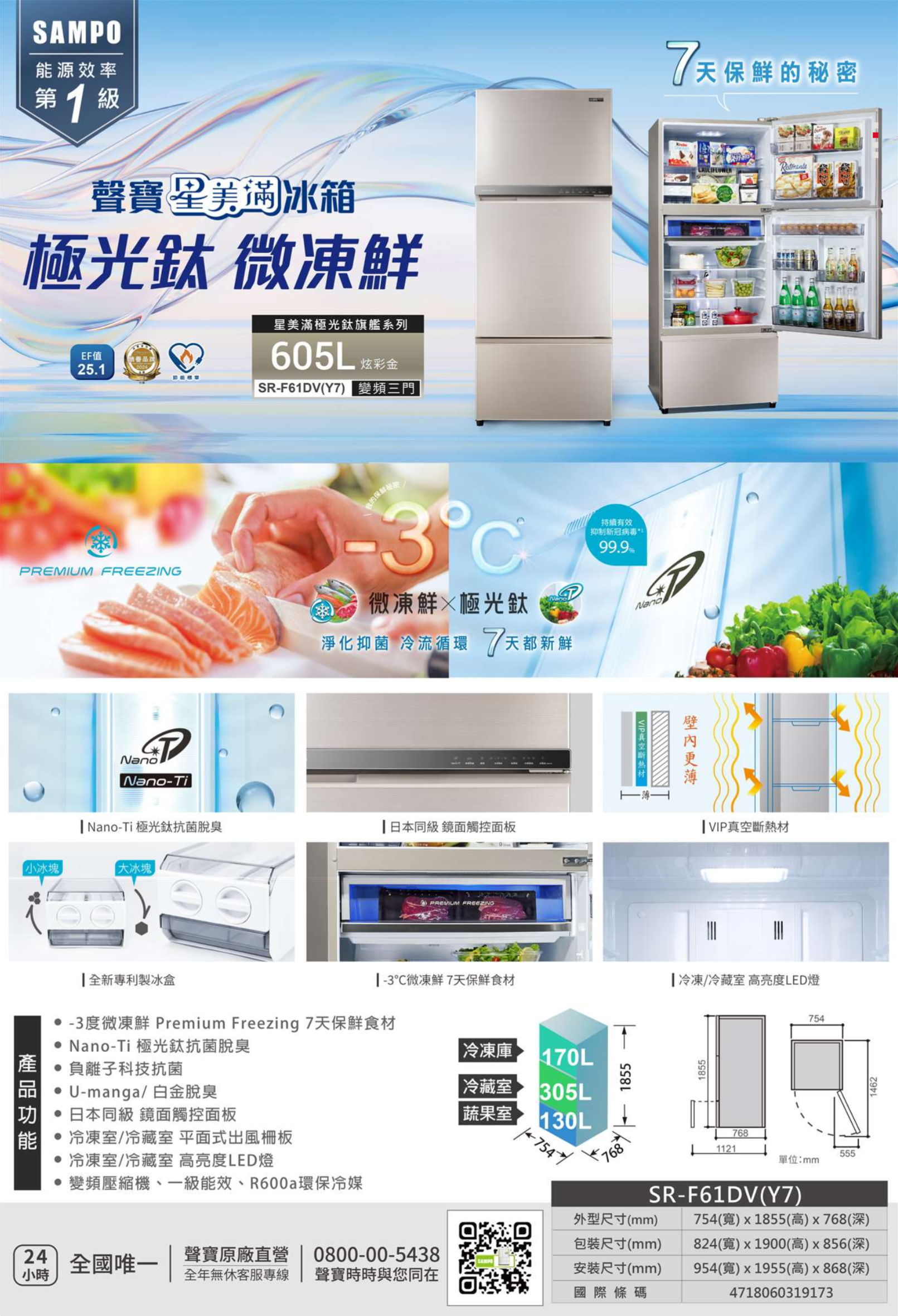 變頻壓縮機、一級能效、R600a環保冷媒
