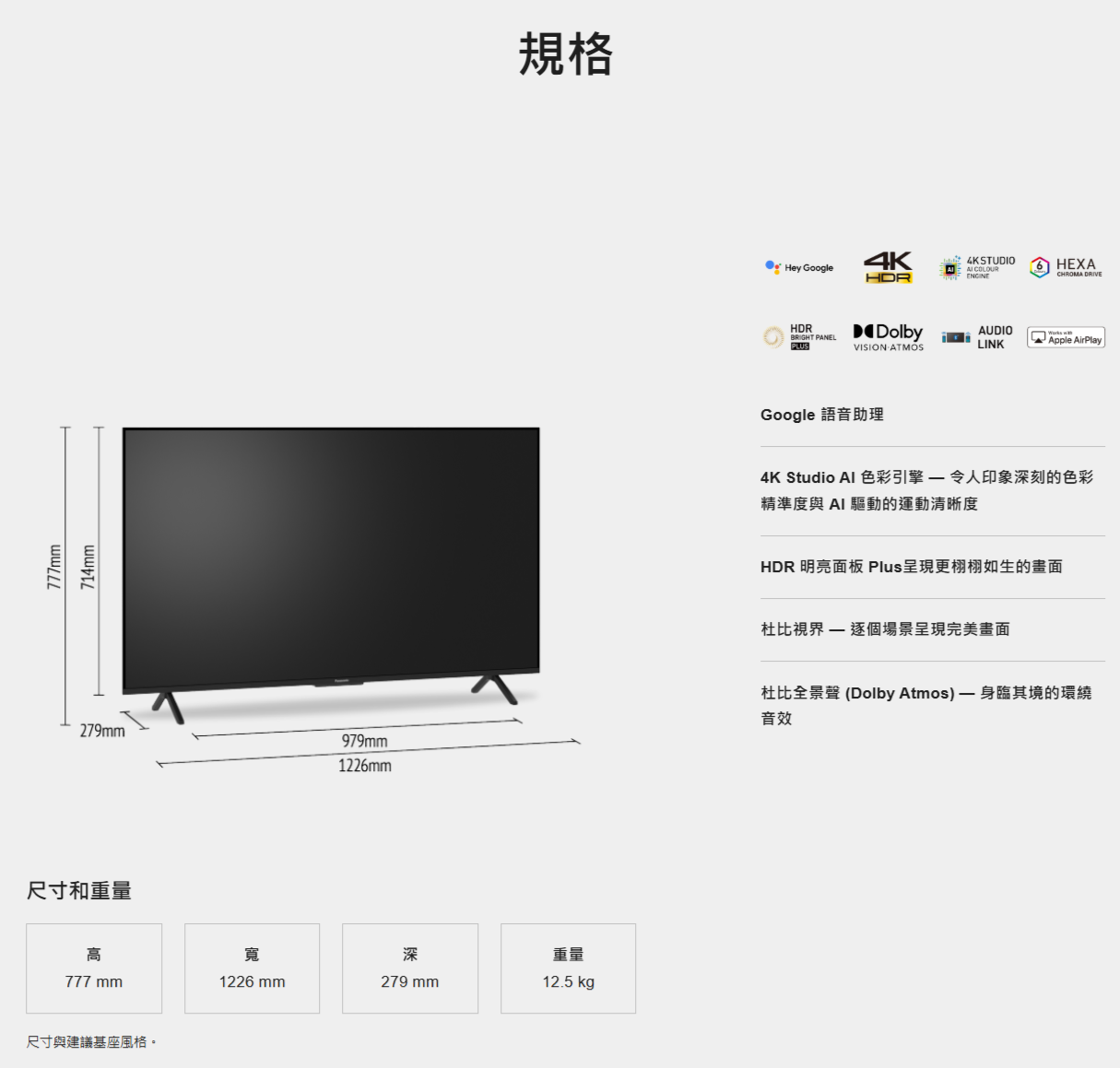 Panasonic 松下 50吋4K LED智慧顯示器 (TN-50W80BGT) NT$21,100 NT$20,600