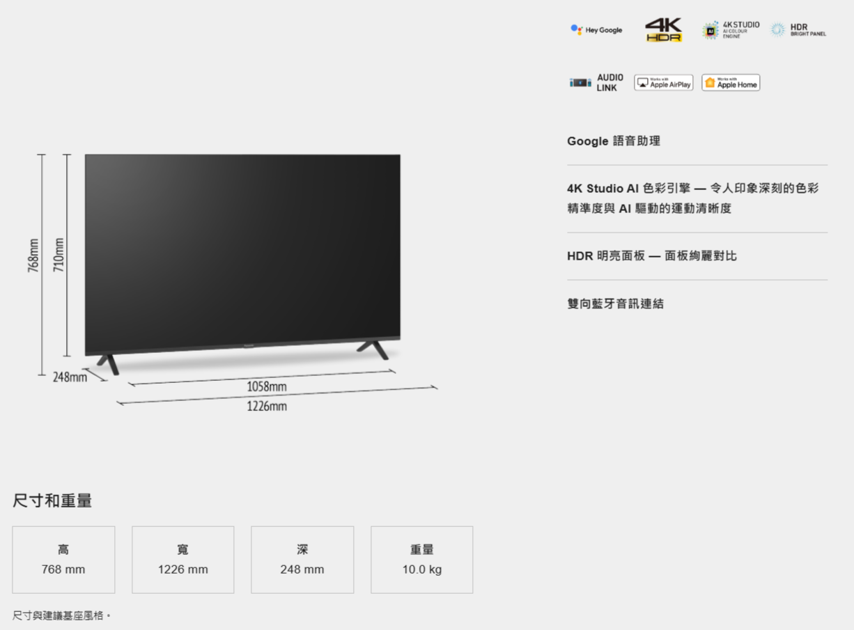 Panasonic 松下 50型 4K連網HDR液晶電視 (TN-50W70BGT) NT$20,100 NT$19,200