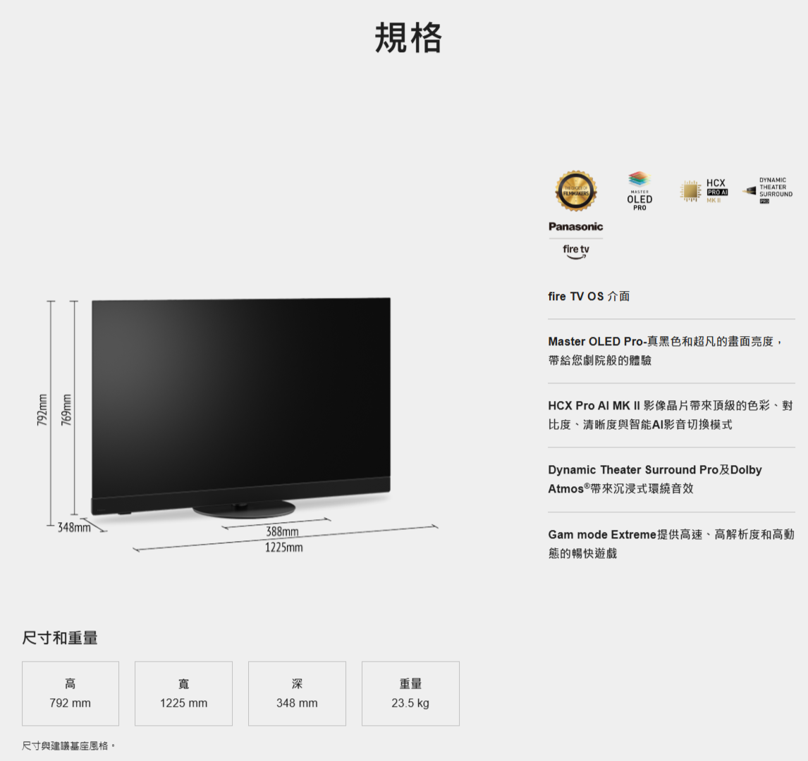 Panasonic 松下 65型 OLED 4K連網智慧顯示器 (TV-65Z90BGT) NT$85,300 NT$74,900