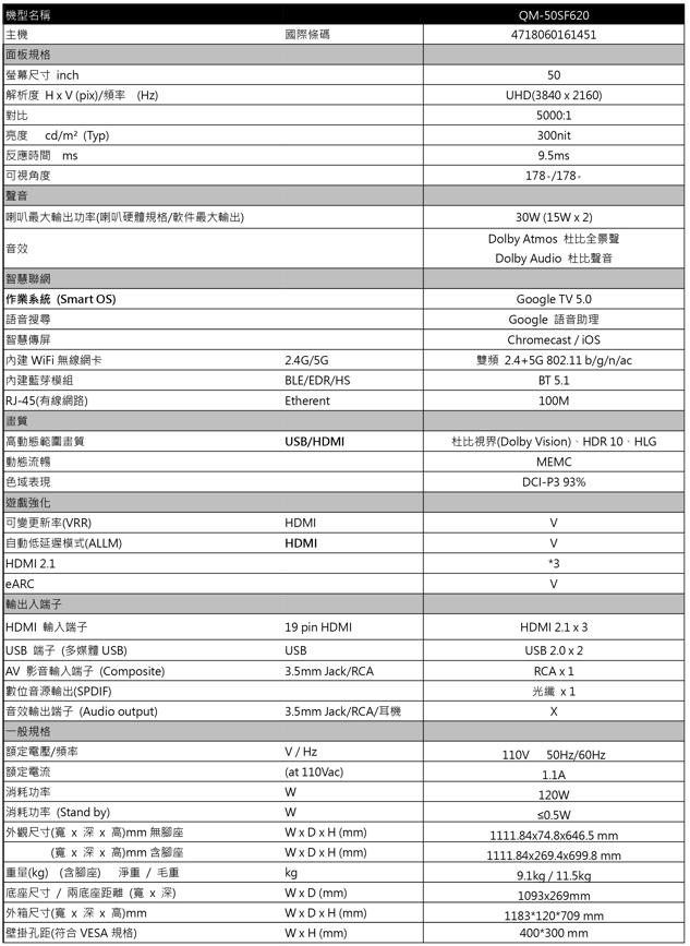 貨號: QM-50SF620 分類: 50型以上, SAMPO聲寶, 所有商品分類, 電視