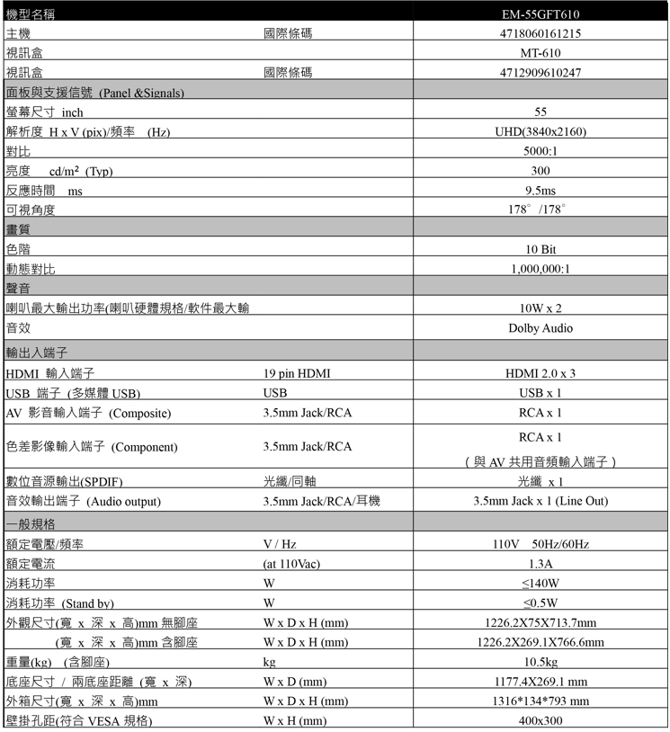 貨號: EM-55GFT610 分類: 50型以上, SAMPO聲寶, 所有商品分類, 電視