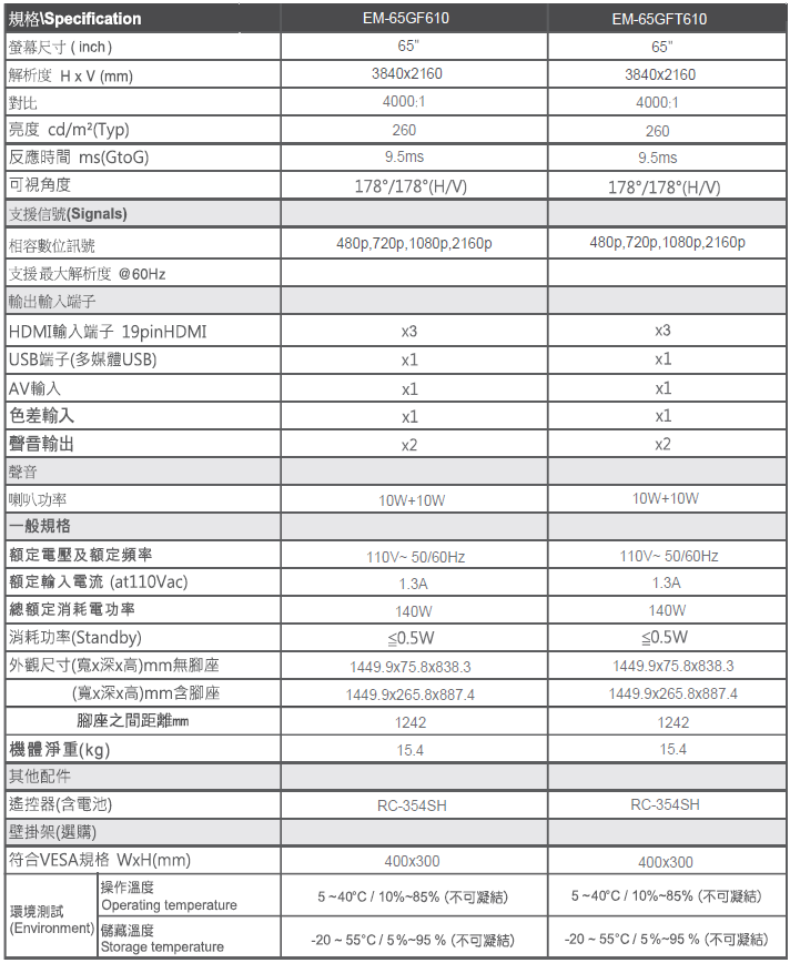 貨號: EM-65GFT610 分類: 60型以上, SAMPO聲寶, 所有商品分類, 電視